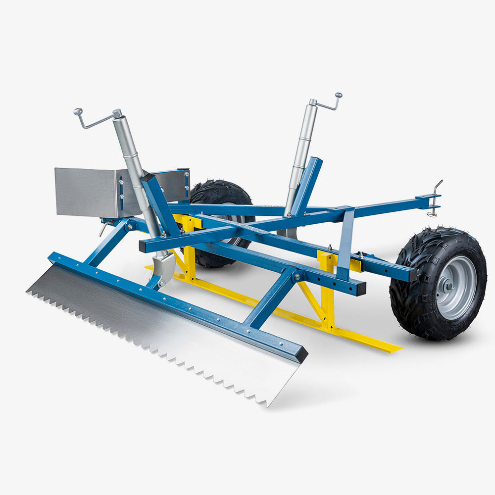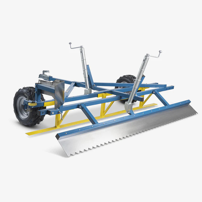 The line of Greystone Drags & Groomers offers a versatile solution that combines leveling and aeration into a single operation, streamlining your surface maintenance efforts. The equipment is designed to effectively remove edge build-up and ensure an even surface by flipping it with each pass. In addition, the arena groomer’s rake is fully height-adjustable catering to various needs. It boasts a robust construction, featuring stainless-steel tines and blades, ensures durability and reliability. The inclusion of a side grader and the PRO blade enhances its versatility for personalization of use. Whether you prefer a tow ball hitch or a drop pin connection, the equipment provides flexibility in usage. Easy to operate without heavy lifting, the equipment is ideal for use with a quad or small tractor. The Greystone Arena Drag series comes in three distinct models: the 5' Arena Drag, the 7' Arena Drag Pro, and the 7' Euro Groomer Pro, allowing you to choose the perfect fit for your specific maintenance requirements.